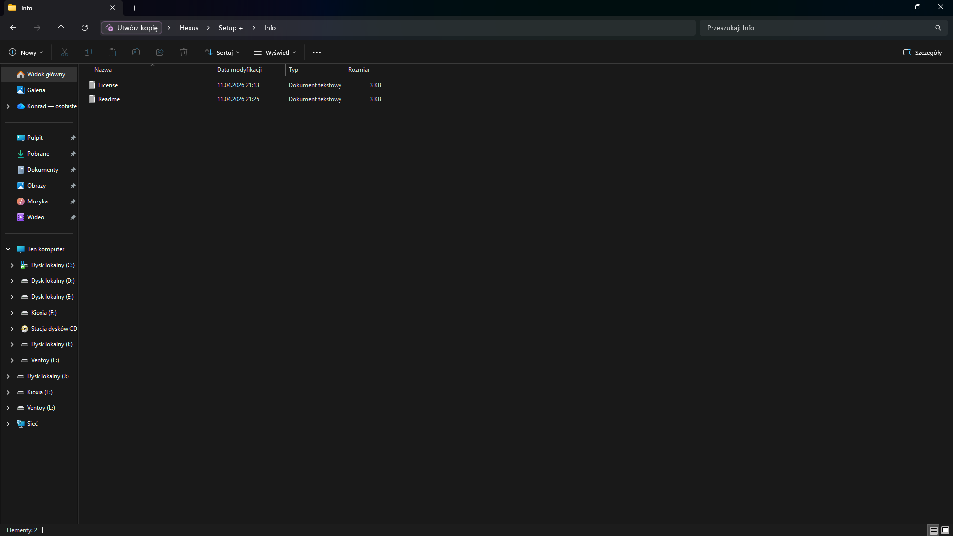2.The extracted archive contains a folder named Hexus and two subfolders: