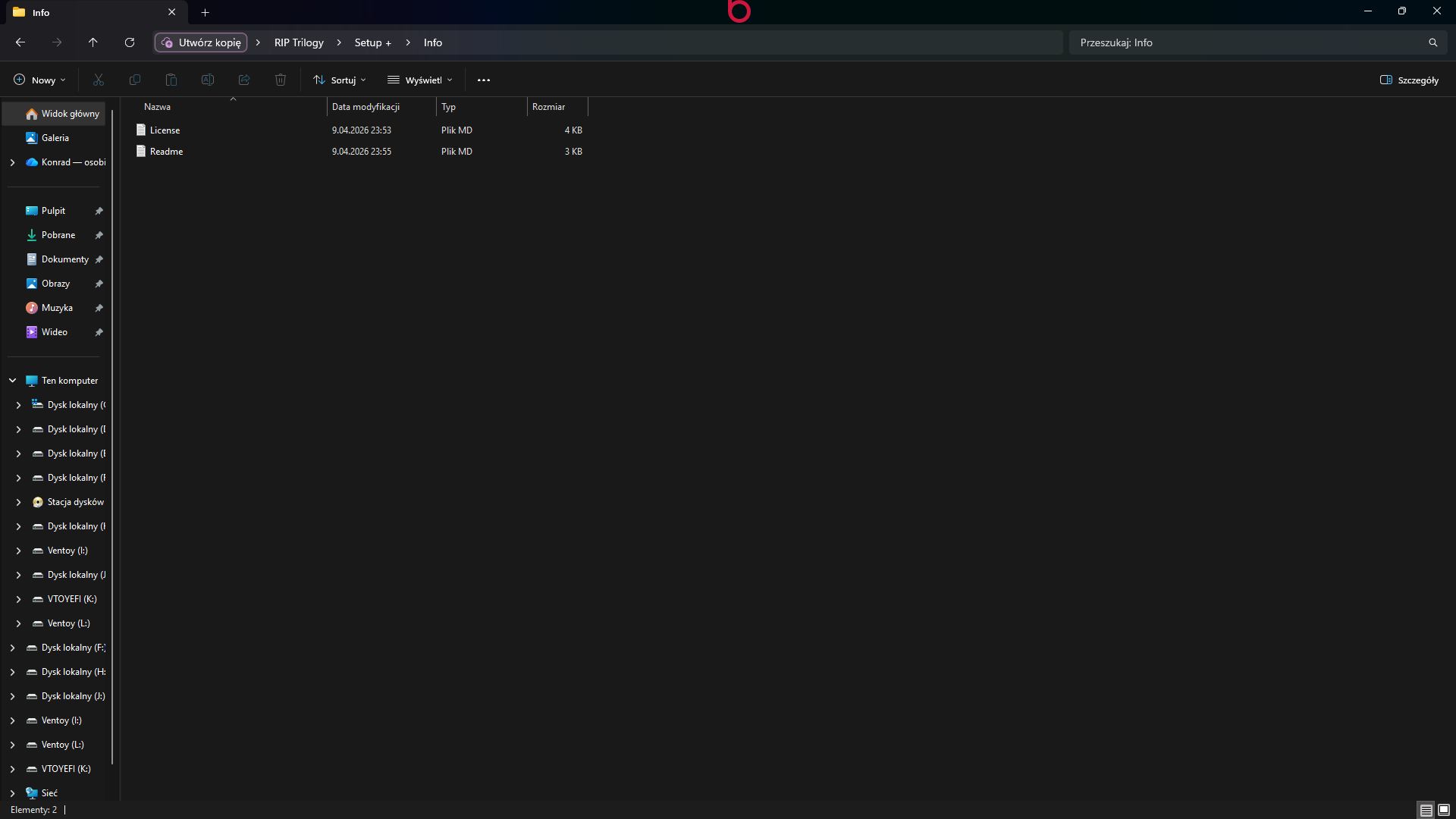 2. The extracted archive contains a folder named “RIP Trilogy” and two subfolders, “Setup” and “Setup +”. The “Setup” subfolder contains the trainer "RIP Trilogy", while the “Setup +” subfolder contains two text files - ‘License’ and “Readme”.